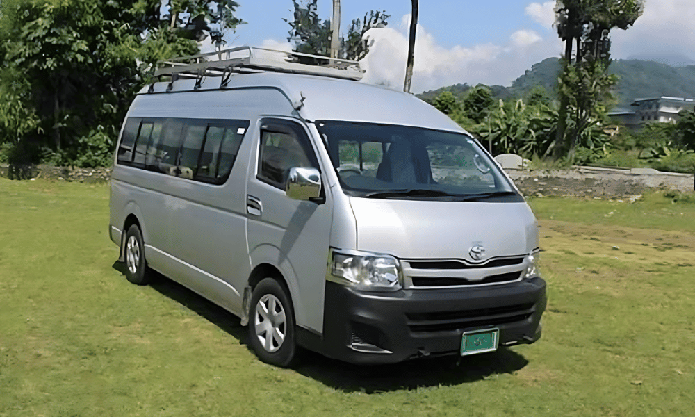 We provide Hi Ace Van rental service from Kathmandu to all major destinations in Nepal. Hi-Ace van is a popular medium size vehicle in Nepal. It is best suitable for a group of people up to 14 people. It has been used as a public vehicle as well as a tourist vehicle in Nepal. The van is a 14 seater vehicle, a product of Toyota company. It’s comfortable for 12 people and adjustable up to 14 with minimum baggage. Baggage carrier is also available at the rooftop.